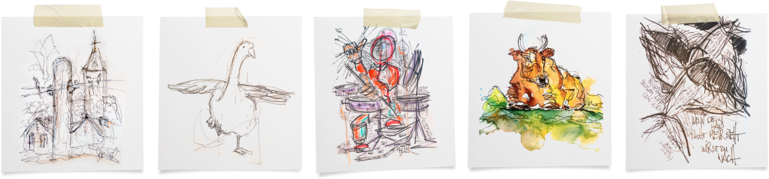 Malen und Kochen sind für mich keine unterschiedlichen Darstellungsformen: Jeweils einfache Zutaten werden durch die Komposition und mit etwas Wahnsinn kreiert zur Kunst. Ob auf dem Teller oder der Leinwand – das bin immer ICH. Und weil es nichts gibt, was sich nicht lohnt zu be- oder verarbeiten, sind vor mir auch die Packungskartonagen der Anlieferungen nicht sicher. Als Untergrund für meine Malerei bekommen sie ein weiteres Leben geschenkt. —- Jens Beiler —-